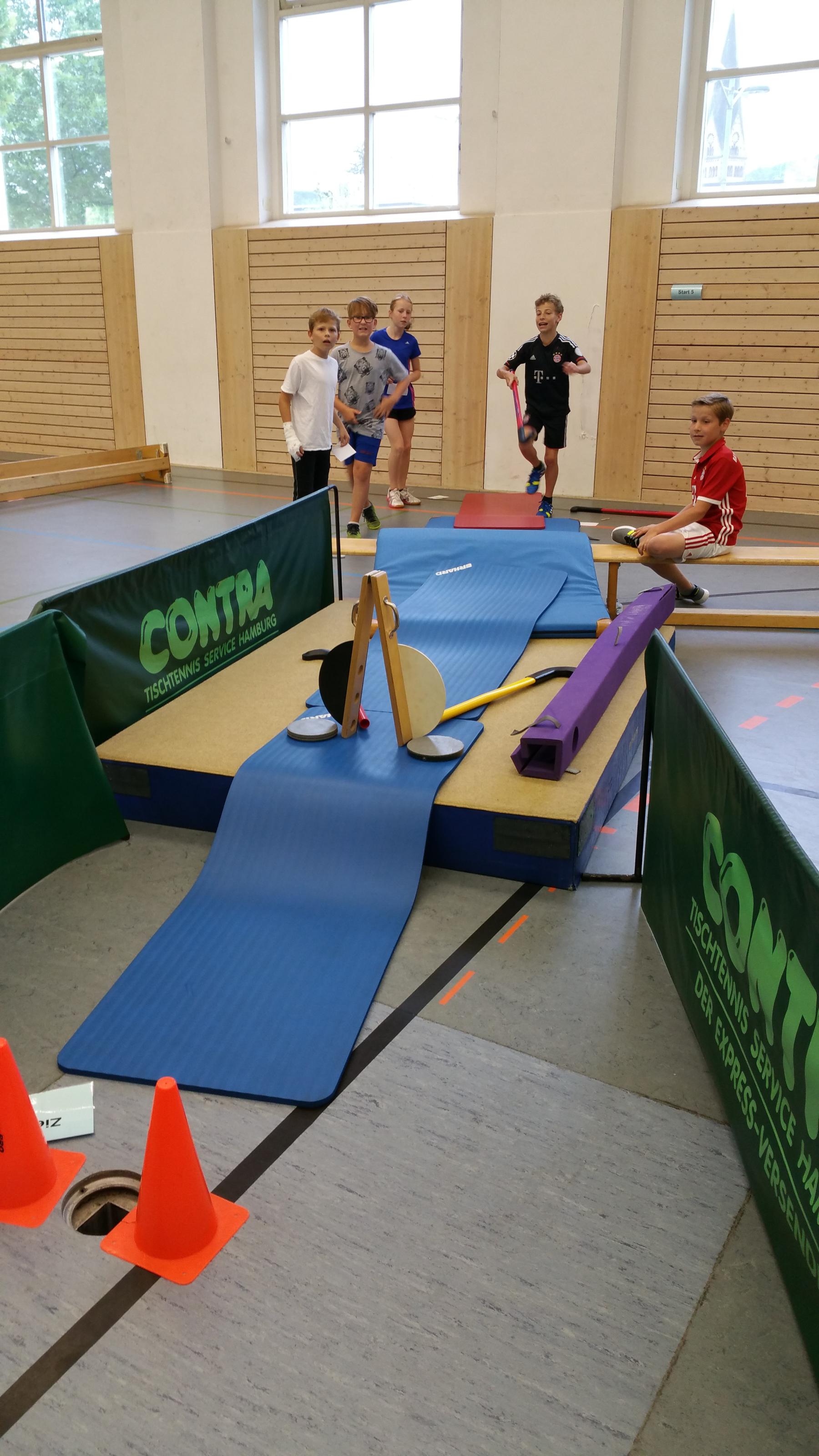 Ettlingen (Ba). Letzte Woche hatten die 5er in Sport eine besondere Vertretungsstunde bei Herrn Haug. Statt Turnen am Reck, Fußball oder Leichtathletik durften sie sich selber was ausdenken. Sie bauten einen Mingolf-Parcour, auf dem sie mit Hockey-Schlägern selber spielten und sich die Stationen gegenseitig erklärten. Am Ende waren sich alle einig: Das waren zwei tolle Sportstunden.